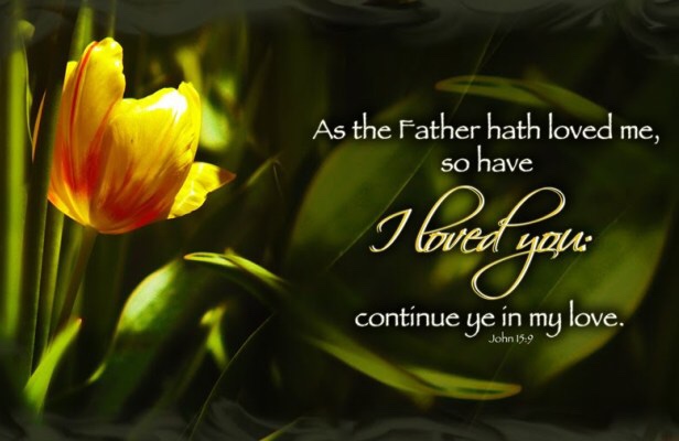 “As the Father hath loved me, so have I loved you: continue ye in my love. If ye keep my commandments, ye shall abide in my love; even as I have kept my Father’s commandments, and abide in his love. These things have I spoken unto you, that my joy might remain in you, and that your joy might be full. This is my commandment, That ye love one another, as I have loved you.” ~ John 15:9-12