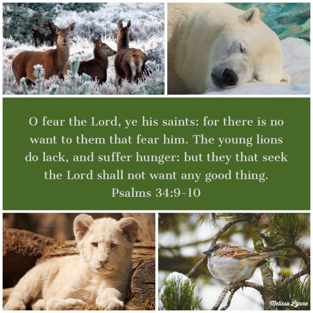 O fear the Lord, ye his saints: for there is no want to them that fear him. The young lions do lack, and suffer hunger: but they that seek the Lord shall not want any good thing. – Psalms 34:9-10