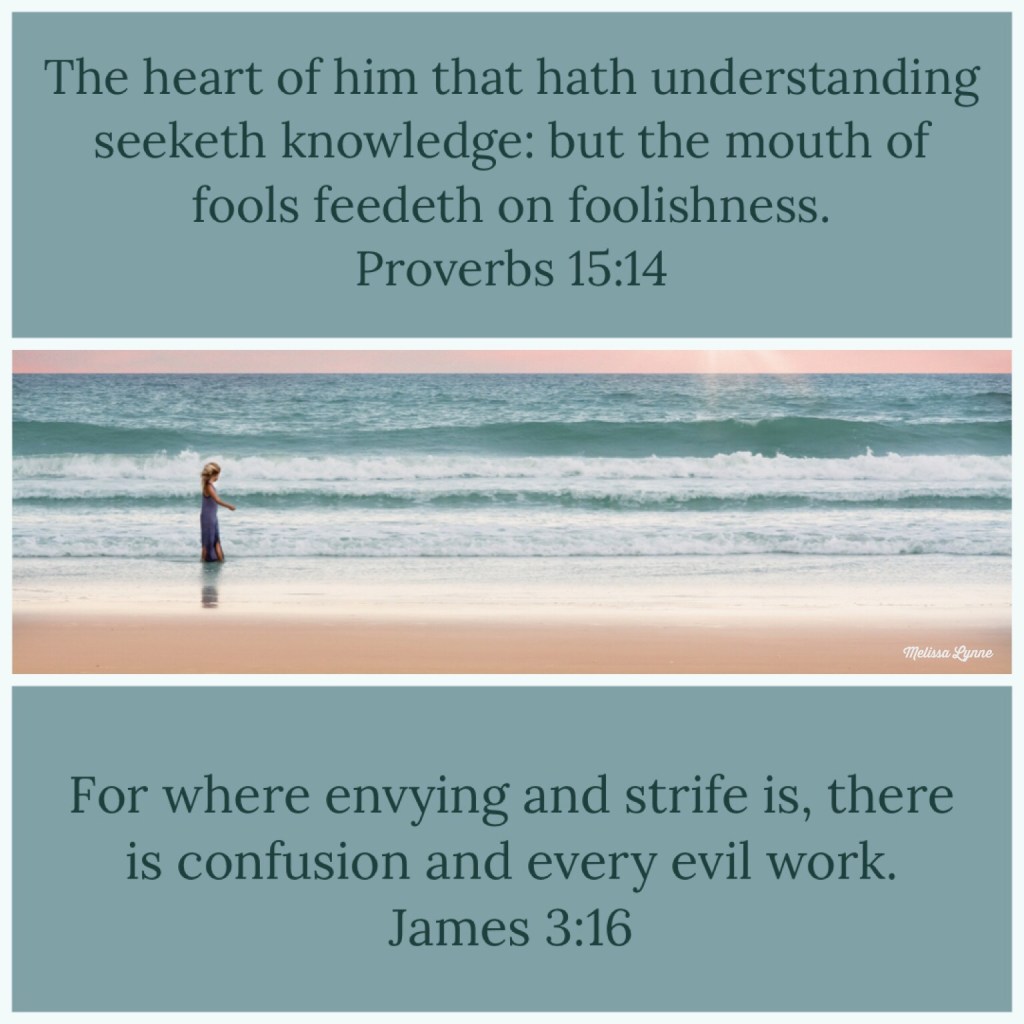 Thank You, Lord, that when we seek, You give understanding and knowledge and help us to avoid feeding on foolishness. I confess that there are times I am jealous of others, and I ask You Holy Ghost to remind me always and quickly that jealousy is foolishness and a lie and it is not a little thing to Your heart or in Your eyes. I thank You for Your goodness and Your conviction that leads to repentance and leads to LIFE! Help me today, Lord, to follow You in every way every minute. I love You, and I ask these things in Jesus’ Name! Amen.