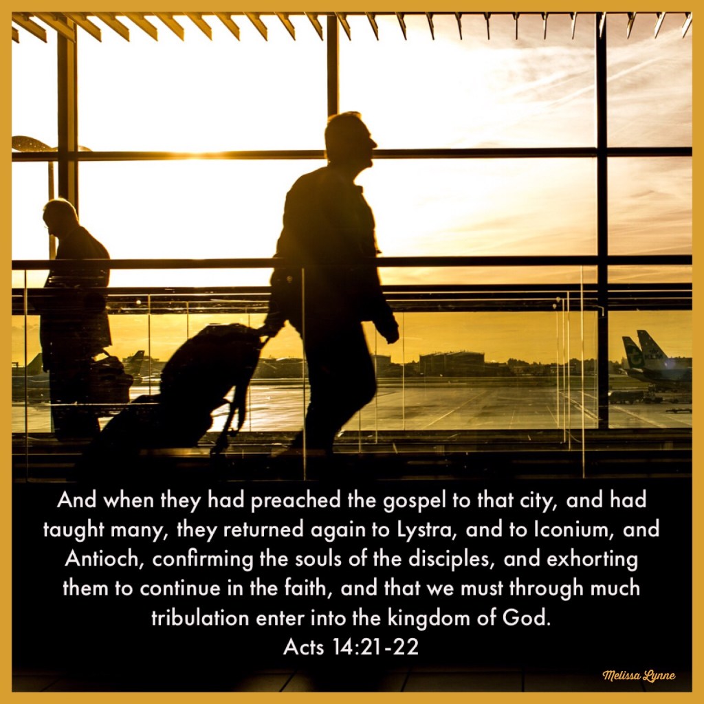 In this passage, Paul has seen a miracle, and while he did his part to point them to Jesus and the Gospel, the people saw these men instead as gods themselves and wanted to make sacrifices to them. Paul and the men tore their clothes and cried out – Why are you doing these things? We are men like you, but we bring to you the Gospel of Jesus Christ that you might turn from idols and worship the One, true and living GOD. Jews came and won over these same crowds, and they ended up stoning Paul. They took him out of the city, assuming he was dead, but as the disciples gathered around him, he got up and went back to the town. The next day he and Barnabas went on their way, returning to cities they had been to before. There they preached the good news and made disciples. They encouraged the believers to remain firm in the faith, letting them know that it is through many tribulations and hardships that we must enter the Kingdom of God. They appointed elders, prayed over them and went on their way until they reached Antioch – the place where their missionary journey began. These were the ones that had sent Paul, so he spent time with them telling all that the Lord had done on the journey – the successes and the failures.