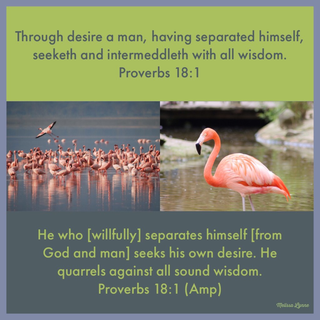 He who [willfully] separates himself [from God and man] seeks his own desire. He quarrels against all sound wisdom. – Proverbs 18:1 (Amp)