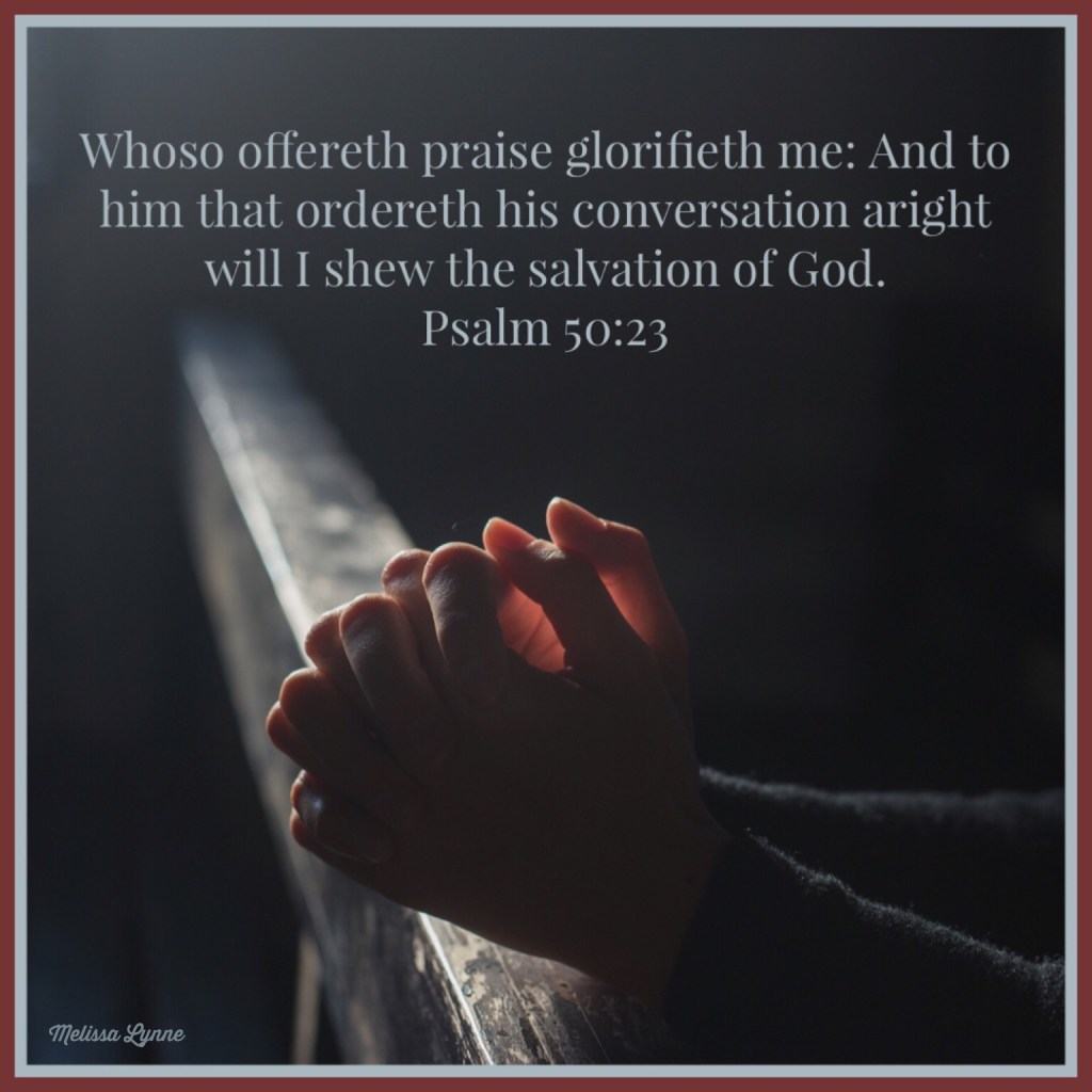 Whoso offereth praise glorifieth me: And to him that ordereth his conversation aright will I shew the salvation of God. – Psalm 50:23