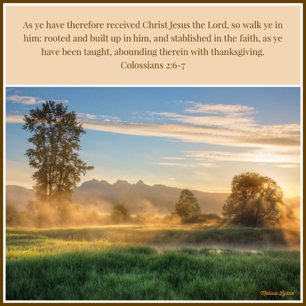 As ye have therefore received Christ Jesus the Lord, so walk ye in him: rooted and built up in him, and stablished in the faith, as ye have been taught, abounding therein with thanksgiving. – Colossians 2:6-7