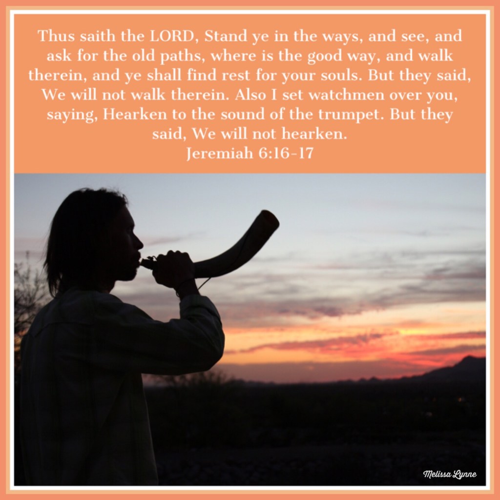 Thus saith the LORD, Stand ye in the ways, and see, and ask for the old paths, where is the good way, and walk therein, and ye shall find rest for your souls. But they said, We will not walk therein. Also I set watchmen over you, saying, Hearken to the sound of the trumpet. But they said, We will not hearken. Therefore hear, ye nations, and know, O congregation, what is among them. Hear, O earth: behold, I will bring evil upon this people, even the fruit of their thoughts, because they have not hearkened unto my words, nor to my law, but rejected it. To what purpose cometh there to me incense from Sheba, and the sweet cane from a far country? your burnt offerings are not acceptable, nor your sacrifices sweet unto me. Therefore thus saith the LORD, Behold, I will lay stumblingblocks before this people, and the fathers and the sons together shall fall upon them; the neighbour and his friend shall perish. – Jeremiah 6:16-21