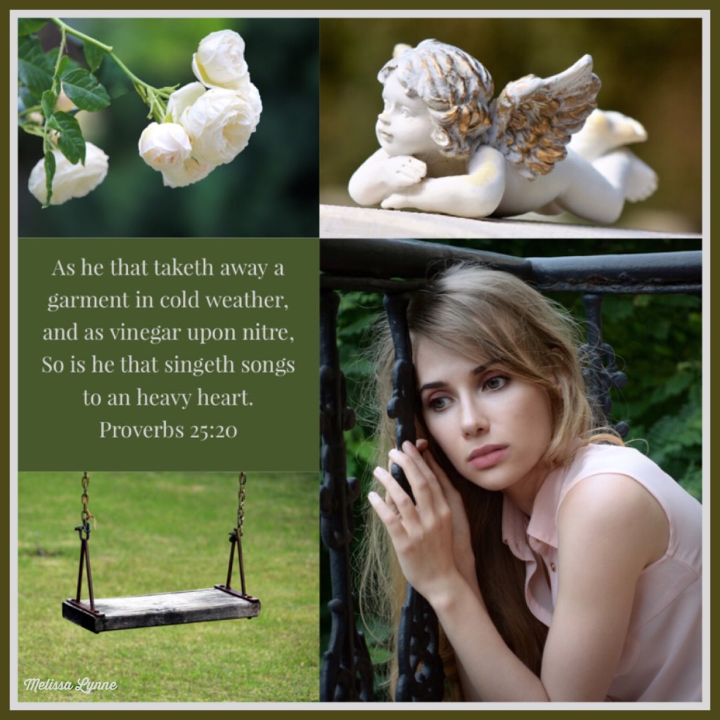 As he that taketh away a garment in cold weather, and as vinegar upon nitre, So is he that singeth songs to an heavy heart. – Proverbs 25:20