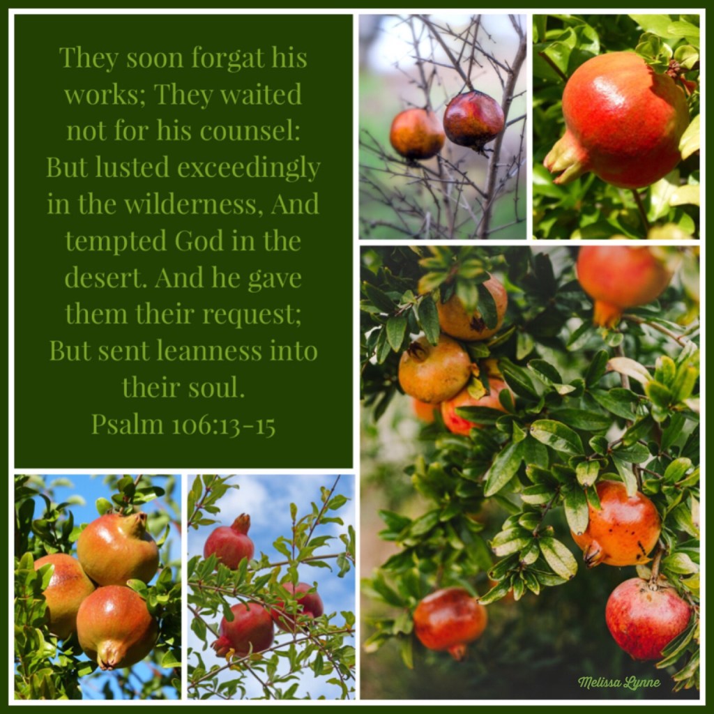 They soon forgat his works; They waited not for his counsel: But lusted exceedingly in the wilderness, And tempted God in the desert. And he gave them their request; But sent leanness into their soul. – Psalm 106:13-15