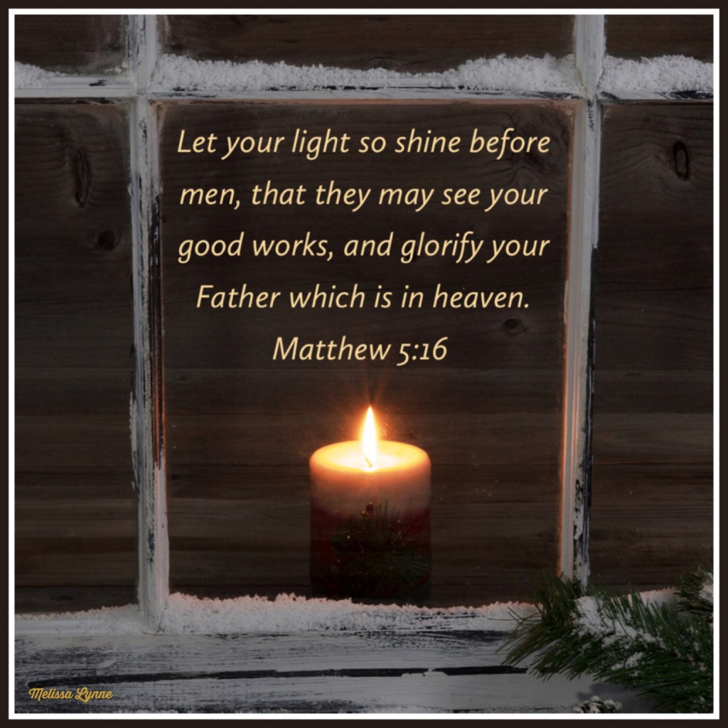 Ye are the salt of the earth: but if the salt have lost his savour, wherewith shall it be salted? it is thenceforth good for nothing, but to be cast out, and to be trodden under foot of men. Ye are the light of the world. A city that is set on an hill cannot be hid. Neither do men light a candle, and put it under a bushel, but on a candlestick; and it giveth light unto all that are in the house. Let your light so shine before men, that they may see your good works, and glorify your Father which is in heaven. – Matthew 5:13-16