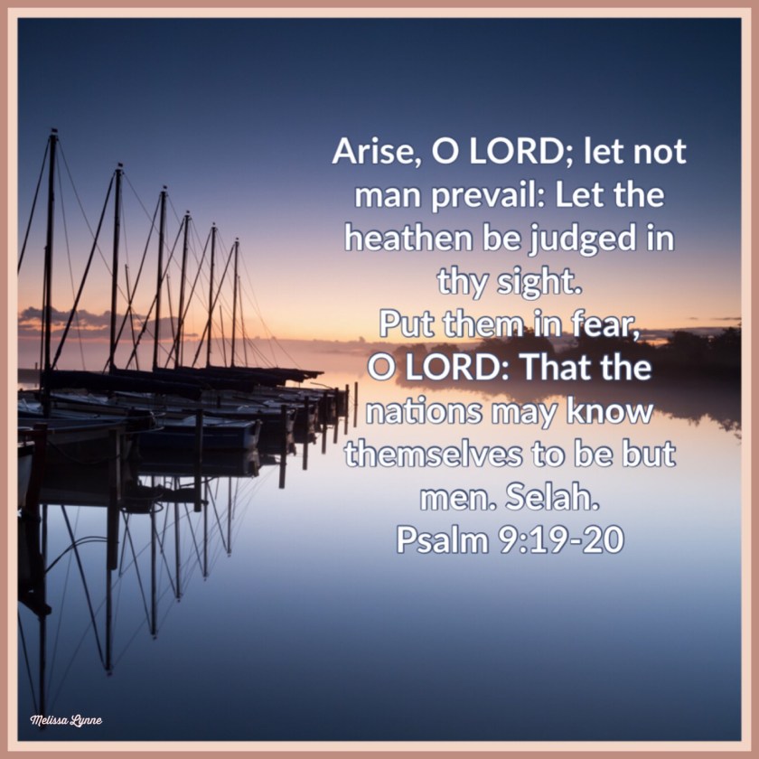 Arise, O LORD; let not man prevail: Let the heathen be judged in thy sight. Put them in fear, O LORD: That the nations may know themselves to be but men. Selah. – Psalm 9:19-20