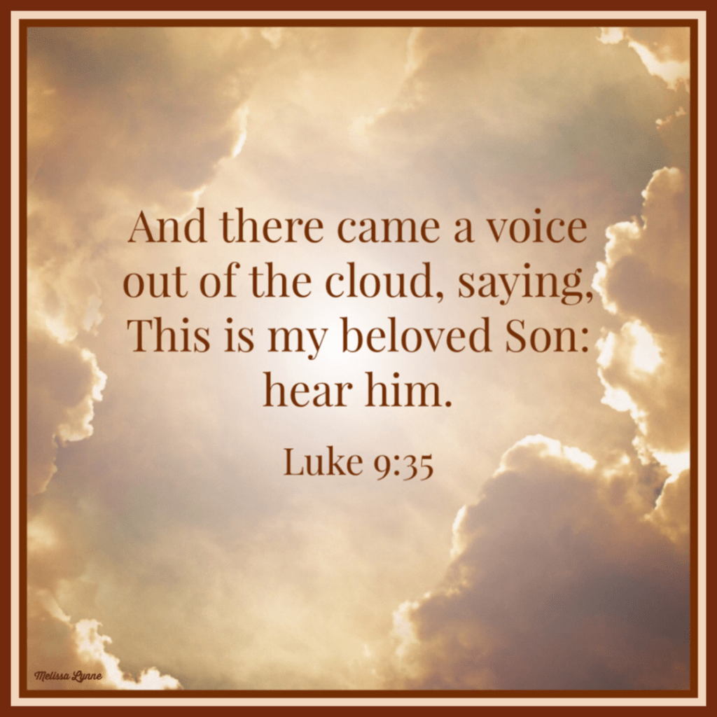I would love to have seen Peter’s face. I am sure that when he first saw God’s glory on Jesus as He stood alongside Moses and Elias, he had a wave of fear. So, he did what we do. He just started talking. And the Bible says that he did so, not knowing what he said. But immediately, God intervened and said those beautiful Words, “This is my beloved Son: hear HIM!” God reminds Peter to hear and follow Jesus! That is great instruction for us, too. Don’t listen to others or even your own thoughts if they conflict with what God has said.