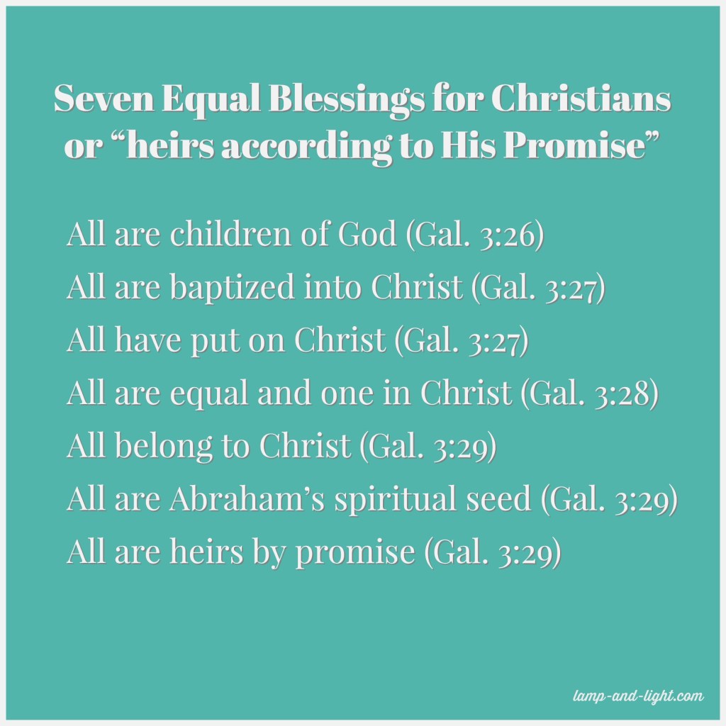 For ye are all the children of God by faith in Christ Jesus. For as many of you as have been baptized into Christ have put on Christ. There is neither Jew nor Greek, there is neither bond nor free, there is neither male nor female: for ye are all one in Christ Jesus. And if ye be Christ’s, then are ye Abraham’s seed, and heirs according to the promise.