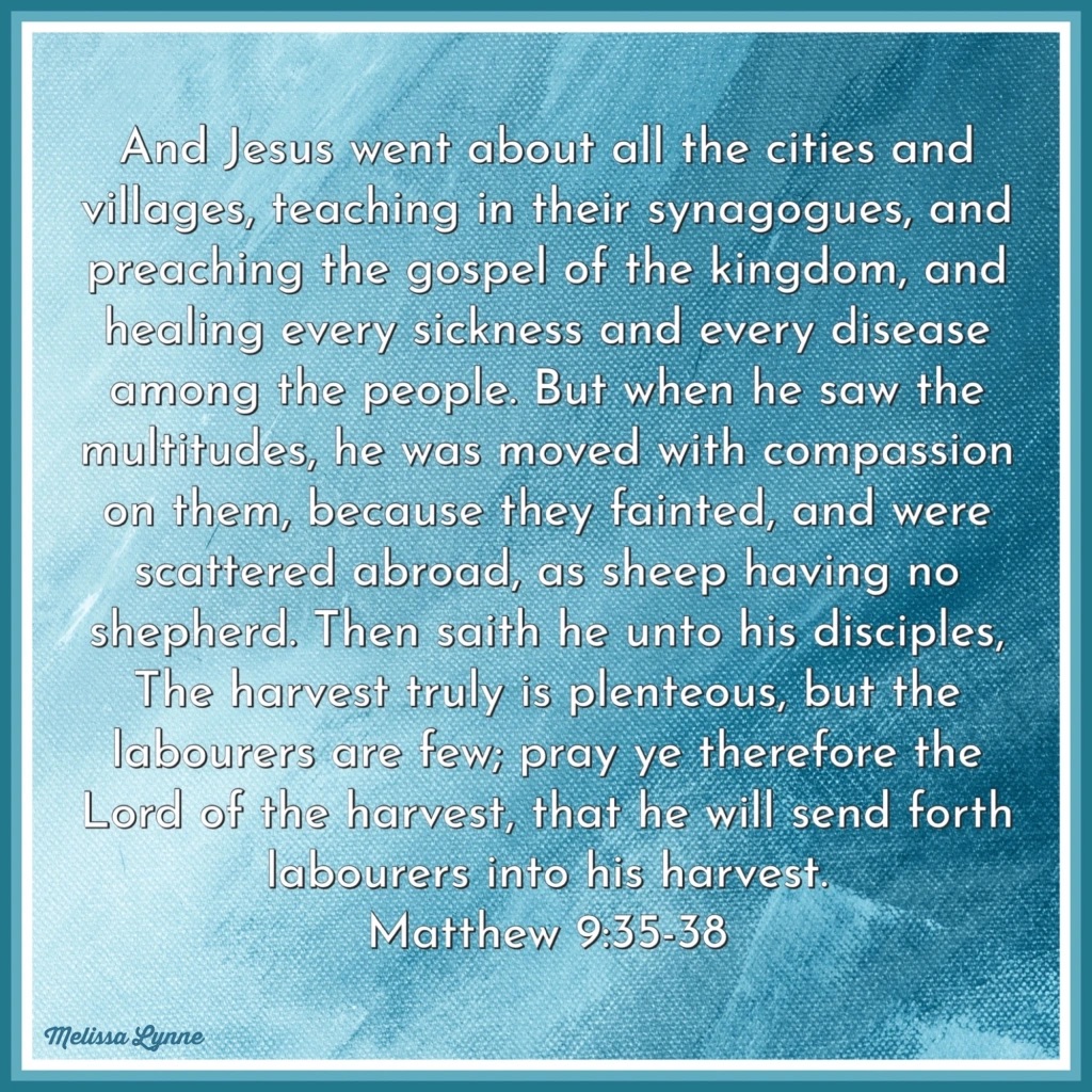 Then saith he unto his disciples, The harvest truly is plenteous, but the labourers are few; Pray ye therefore the Lord of the harvest, that he will send forth labourers into his harvest. – Matthew 9:37-38