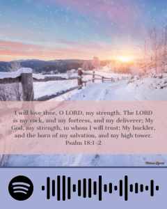 I will love thee, O LORD, my strength. The LORD is my rock, and my fortress, and my deliverer; My God, my strength, in whom I will trust; My buckler, and the horn of my salvation, and my high tower. I will call upon the LORD, who is worthy to be praised: So shall I be saved from mine enemies.- Psalm 18:1-3