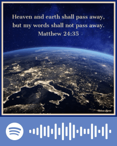 Now learn a parable of the fig tree; When his branch is yet tender, and putteth forth leaves, ye know that summer is nigh: so likewise ye, when ye shall see all these things, know that it is near, even at the doors. Verily I say unto you, This generation shall not pass, till all these things be fulfilled. Heaven and earth shall pass away, but my words shall not pass away. – Matthew 24:32-35