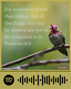 For my mouth shall speak truth; And wickedness is an abomination to my lips. All the words of my mouth are in righteousness; There is nothing froward or perverse in them. They are all plain to him that understandeth, And right to them that find knowledge. Receive my instruction, and not silver; And knowledge rather than choice gold. For wisdom is better than rubies; And all the things that may be desired are not to be compared to it. – Proverbs 8:7-11