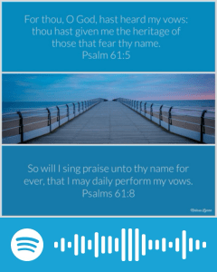 For thou, O God, hast heard my vows: thou hast given me the heritage of those that fear thy name. – Psalm 61:5