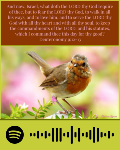 And now, Israel, what doth the LORD thy God require of thee, but to fear the LORD thy God, to walk in all his ways, and to love him, and to serve the LORD thy God with all thy heart and with all thy soul, to keep the commandments of the LORD, and his statutes, which I command thee this day for thy good? – Deuteronomy 9:12-13
