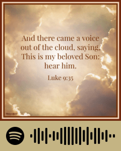 I would love to have seen Peter’s face. I am sure that when he first saw God’s glory on Jesus as He stood alongside Moses and Elias, he had a wave of fear. So, he did what we do. He just started talking. And the Bible says that he did so, not knowing what he said. But immediately, God intervened and said those beautiful Words, “This is my beloved Son: hear HIM!” God reminds Peter to hear and follow Jesus! That is great instruction for us, too. Don’t listen to others or even your own thoughts if they conflict with what God has said.