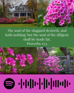 The soul of the sluggard desireth, and hath nothing: but the soul of the diligent shall be made fat. – Proverbs 13:4
