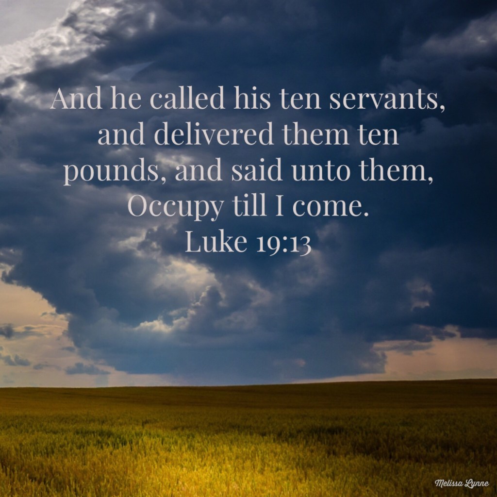 He said therefore, A certain nobleman went into a far country to receive for himself a kingdom, and to return. And he called his ten servants, and delivered them ten pounds, and said unto them, Occupy till I come.. – Luke 19:12-13