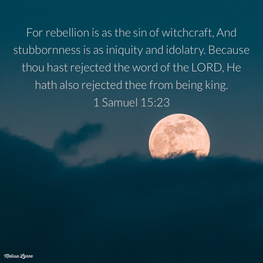 And Samuel said, Hath the LORD as great delight in burnt offerings and sacrifices, As in obeying the voice of the LORD? Behold, to obey is better than sacrifice, And to hearken than the fat of rams. For rebellion is as the sin of witchcraft, And stubbornness is as iniquity and idolatry. Because thou hast rejected the word of the LORD, He hath also rejected thee from being king. – 1 Samuel 15:22-23