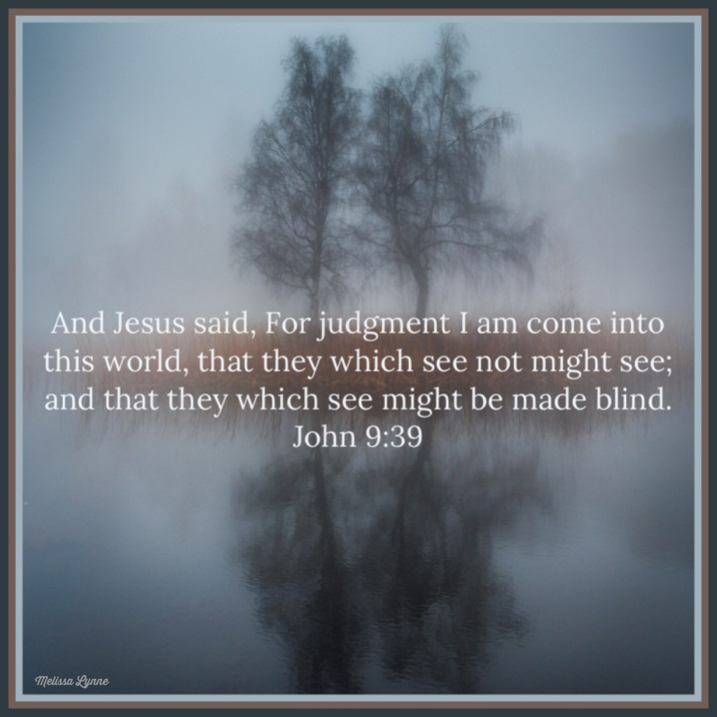 And Jesus said, For judgment I am come into this world, that they which see not might see; and that they which see might be made blind. And some of the Pharisees which were with him heard these words, and said unto him, Are we blind also? Jesus said unto them, If ye were blind, ye should have no sin: but now ye say, We see; therefore your sin remaineth. – John 9:39-41