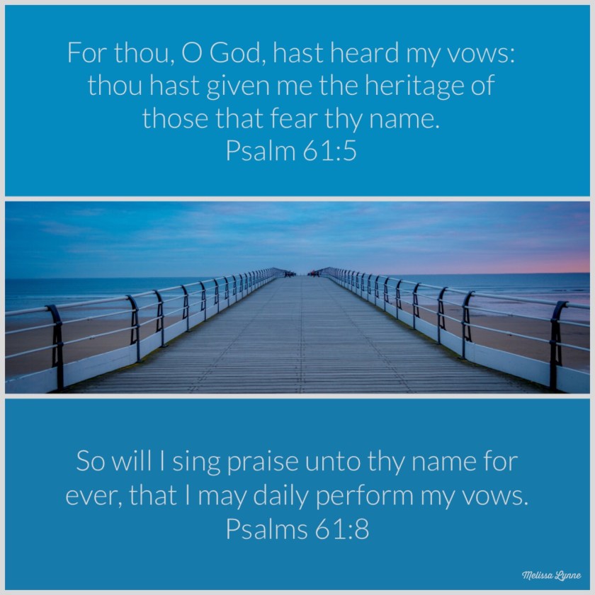 For thou, O God, hast heard my vows: thou hast given me the heritage of those that fear thy name. – Psalm 61:5