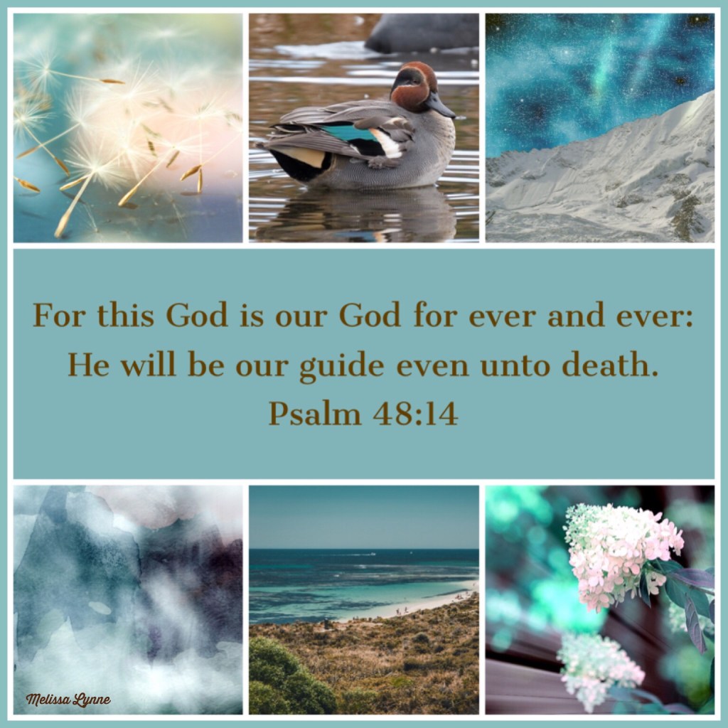 He Will Be Our Guide Even Unto Death We have thought of thy lovingkindness, O God, In the midst of thy temple. According to thy name, O God, so is thy praise unto the ends of the earth: Thy right hand is full of righteousness. Let mount Zion rejoice, Let the daughters of Judah be glad, because of thy judgments. Walk about Zion, and go round about her: Tell the towers thereof. Mark ye well her bulwarks, consider her palaces; That ye may tell it to the generation following. For this God is our God for ever and ever: He will be our guide even unto death. – Psalm 48:9-14